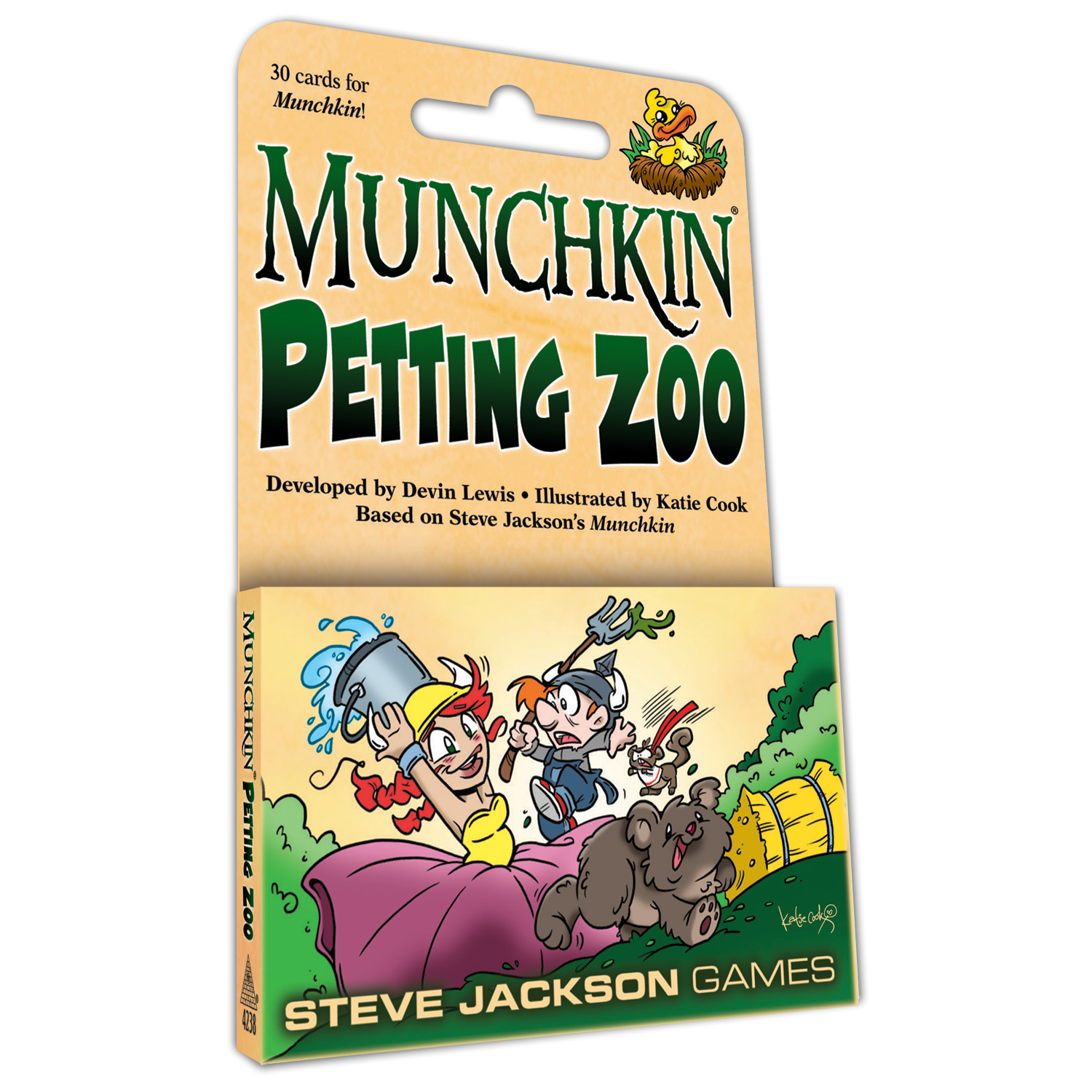 Where else can you find adorable animals, screaming children, and the most awful smells? Munchkin Petting Zoo lets you add a menagerie of surprisingly friendly fauna to your arsenal! But you should probably still wash your hands after you pet that . . . giraffe?